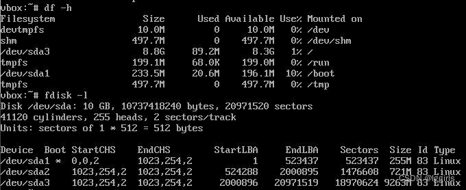 - mkfs.ext4 /dev/sda3 ## 将第3分区格式化为了ext4文件系统